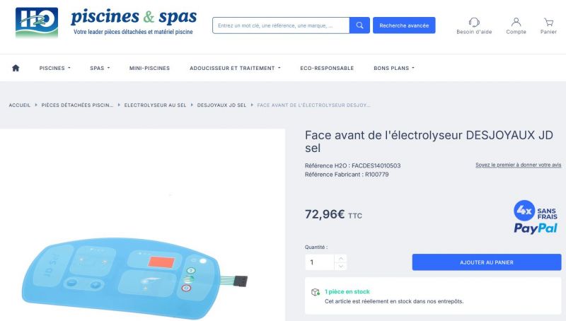 Problème d'électrolyse sur JD SEL 60 Desjoyaux